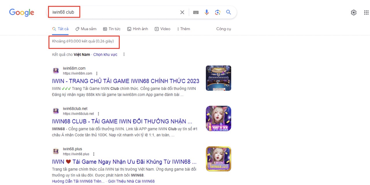 - Một chỉ số quan trọng để đánh giá sự phổ biến và uy tín của iWin68 là lưu lượng tìm kiếm và truy cập trang web trên Google. Nếu iWin68 có một lượng tìm kiếm đáng kể, điều này cho thấy sự quan tâm và sự tin cậy của người chơi đối với trang web này. Tuy nhiên, kết quả hiển thị trên Google cho từ khóa iwin68 Club chỉ khoảng 693.000, một con số nhỏ gấp 4 lần so với iWin Club