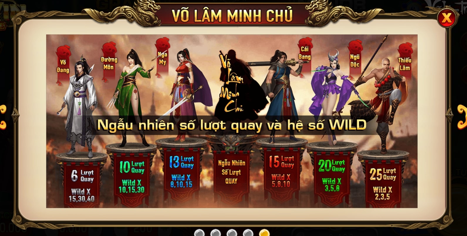 • Chọn VÕ LÂM MINH CHỦ thì số vòng quay và hệ số là ngẫu nhiên